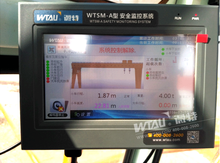圖為微特WTSM-A型門(mén)式起重機(jī)安全監(jiān)控系統(tǒng)主機(jī)界面