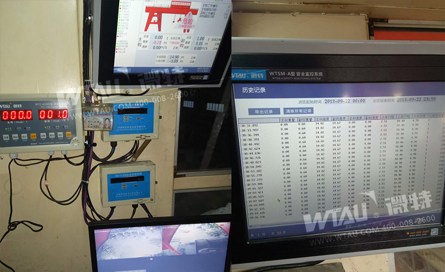 上圖為監(jiān)控系統(tǒng)主機儀表、超載儀表及視頻部分顯示器