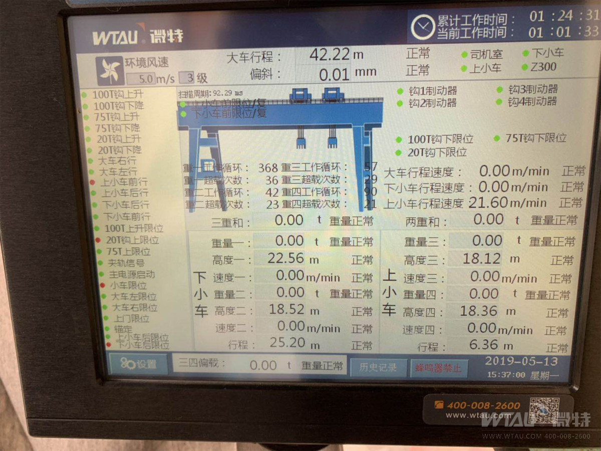 由微特技術(shù)有限公司為南通誠投安裝的250T龍門吊WTSM-A型安全監(jiān)控系統(tǒng)順利通過南通特檢院的驗(yàn)收,現(xiàn)已經(jīng)投入使用。