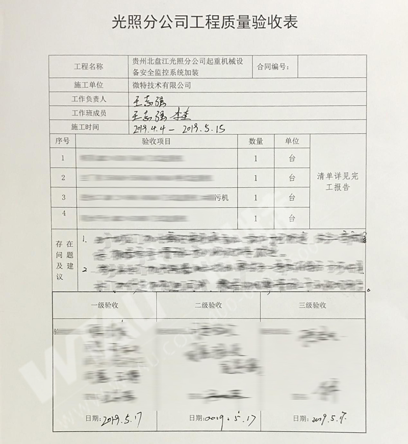 貴州北盤江光照分公司安全監(jiān)控系統(tǒng)加裝項目在客戶要求定檢時間前完工并且一次性通過電廠內(nèi)部三級驗收且無整改項目,驗收現(xiàn)場得到客戶肯定。同時,項目已順利通過黔西南特種設(shè)備監(jiān)督檢驗。