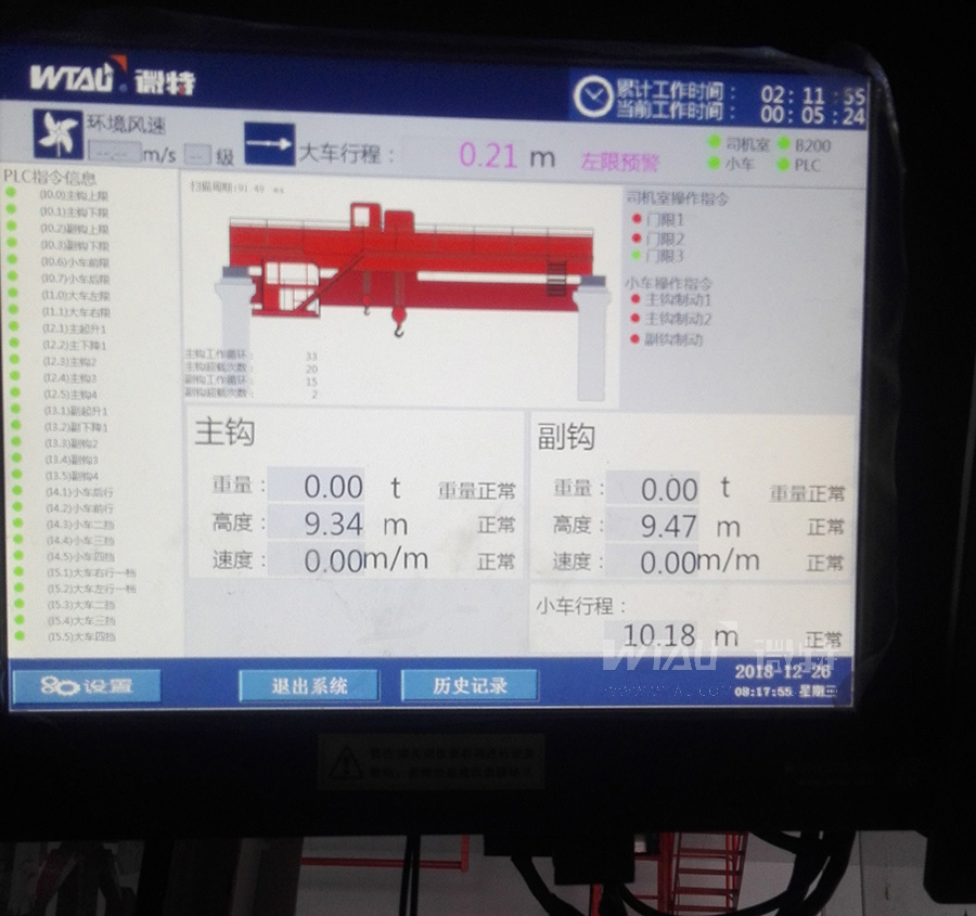 ▲WTSM-A型起重機安全監(jiān)控系統(tǒng)儀表界面