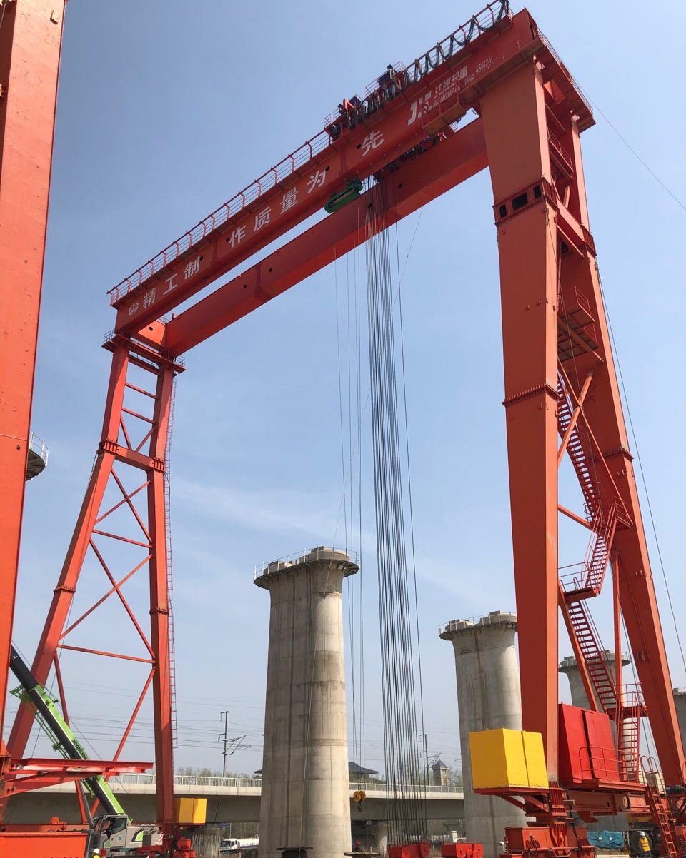 提梁機是一種為橋梁建設而專門設計的一種門式起重機,提梁機既可兩臺配合抬吊預制梁,也可以單臺起重機配雙吊具起吊預制梁,主要用于將預制梁從制梁臺提吊至存梁臺位,預制梁養(yǎng)護完成后將其從存梁臺位吊運到運梁車上。