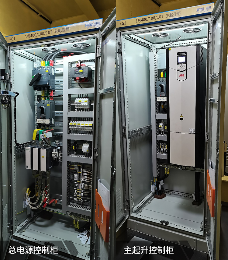 2021年秋季,由微特技術(shù)有限公司承接三板溪電廠主廠房400T/100T/10T橋機控制系統(tǒng)改造正式開工,范圍主要包括2臺400T/100T/10T橋式起重機整車控制系統(tǒng)改造以及載荷試驗??刂葡到y(tǒng)改造包含PLC控制柜、總電源控制柜、主起升控制機構(gòu)、大車控制機構(gòu)、小車控制機構(gòu)、電動葫蘆控制機構(gòu)、聯(lián)動臺、照明控制箱、控制系統(tǒng)各元器件、電纜更換和調(diào)試。