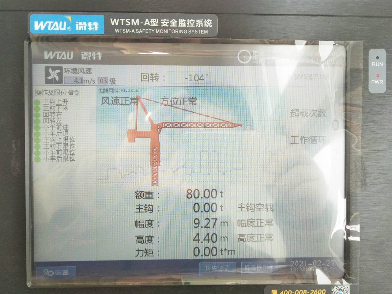 同時(shí),現(xiàn)場(chǎng)設(shè)備還配備了微特技術(shù)DXZ型高度限制器和WFM-1型方位傳感器。