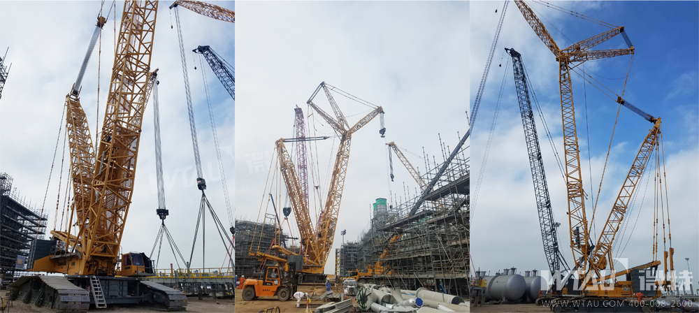 中海福陸重工有限公司吊裝工作現(xiàn)場多臺利勃海爾履帶吊在繁忙的工作中