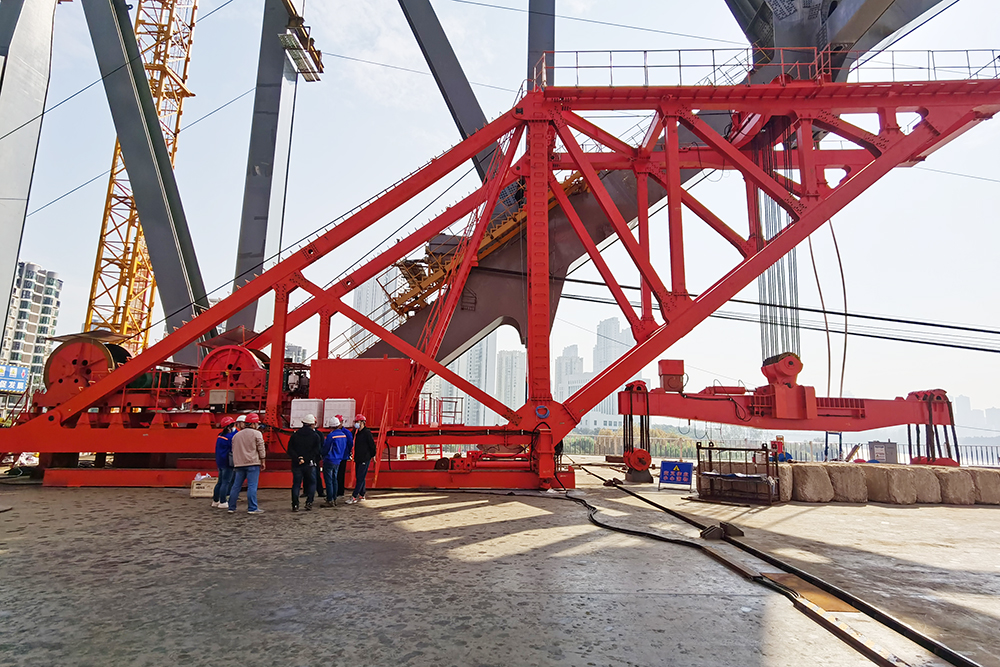 當時漢江灣橋的施工現場機器轟鳴,大橋正在進行上部結構鋼梁安裝,有的在焊接,有的在吊裝桿件,工序有序穿插,而微特本次主要給架梁起重機加裝安全監(jiān)控管理系統(tǒng),完成該架梁起重機安全監(jiān)控管理系統(tǒng)的設計、現場安裝、調試及后續(xù)使用服務。