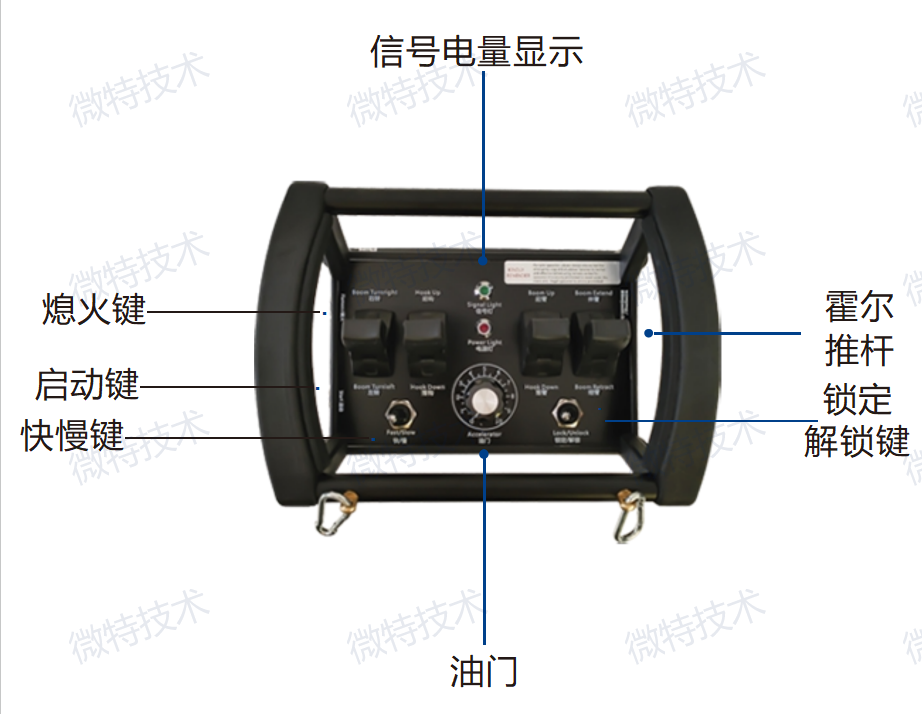 2、無(wú)線遙控器所有開關(guān)按鍵復(fù)位,并且在鎖定狀態(tài)下,打開電源開關(guān)。