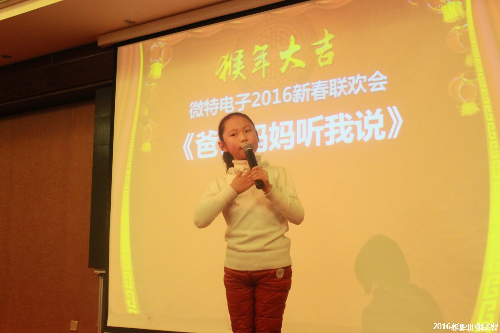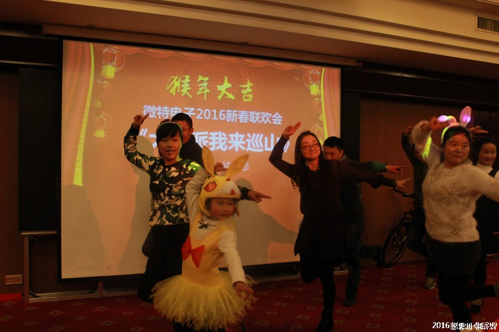 1月30日,微特電子全體同仁及其家屬共同參與了隆重的迎新年活動(dòng)。當(dāng)天,精彩活動(dòng)持續(xù)不斷,在微特廠區(qū)大家一起玩趣味游戲、PK大戰(zhàn)。在金德瑞酒店大家齊聚一堂,共賀猴年新春。一起渡過了一個(gè)歡樂的節(jié)日。