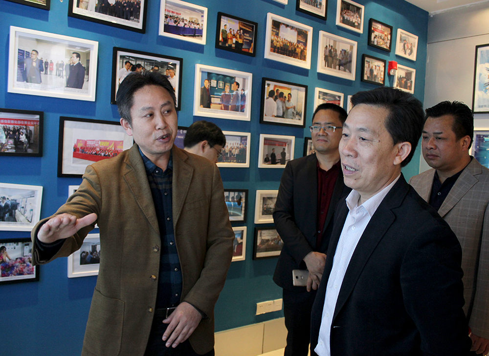 上圖:郭主席一行來(lái)到宜昌市微特電子設(shè)備有限責(zé)任公司,聶道靜作為微特創(chuàng)始人在展廳向來(lái)訪領(lǐng)導(dǎo)介紹微特電子的發(fā)展歷程。