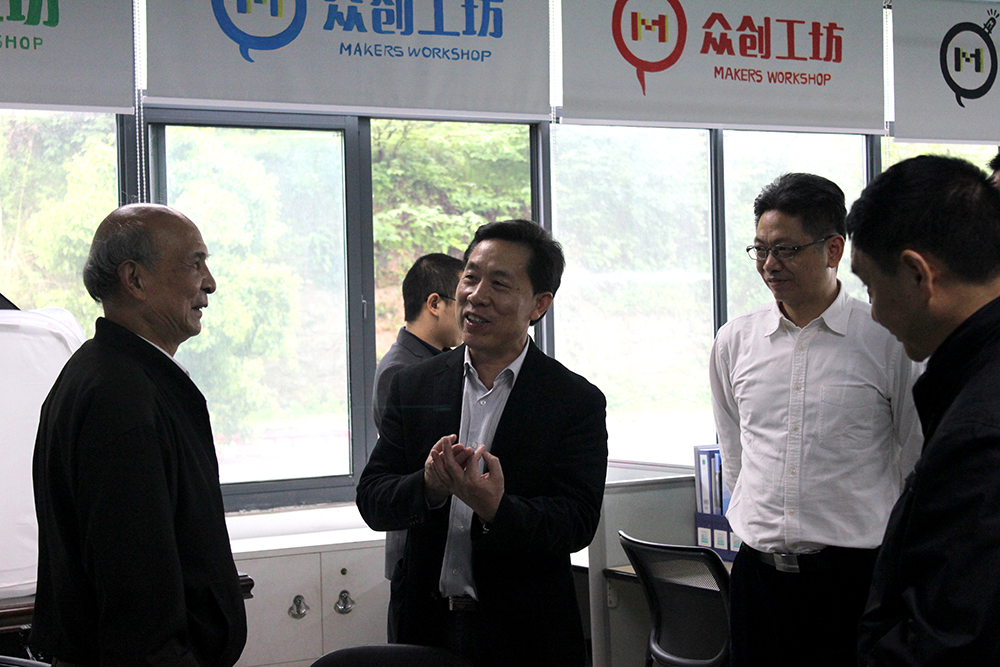 隨后郭主席一行來(lái)到眾創(chuàng)工坊及傳感物聯(lián)實(shí)驗(yàn)室。董事長(zhǎng)聶道靜向郭主席介紹了眾創(chuàng)工坊的運(yùn)作情況及實(shí)驗(yàn)室的各類實(shí)驗(yàn)設(shè)備和實(shí)驗(yàn)平臺(tái)。在眾創(chuàng)工坊郭主席與聶董熱情交流,對(duì)孵化器建設(shè)眾創(chuàng)工坊及免費(fèi)為創(chuàng)客提供制造平臺(tái)表示贊賞,同時(shí)還與眾創(chuàng)工坊內(nèi)的創(chuàng)客交流了創(chuàng)新產(chǎn)品和創(chuàng)意想法。