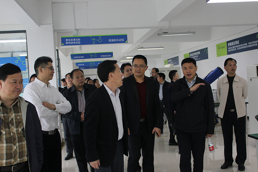 上圖:郭主席在傳感物聯(lián)實(shí)驗(yàn)室就科技實(shí)驗(yàn)平臺(tái)建設(shè)交流意見(jiàn)