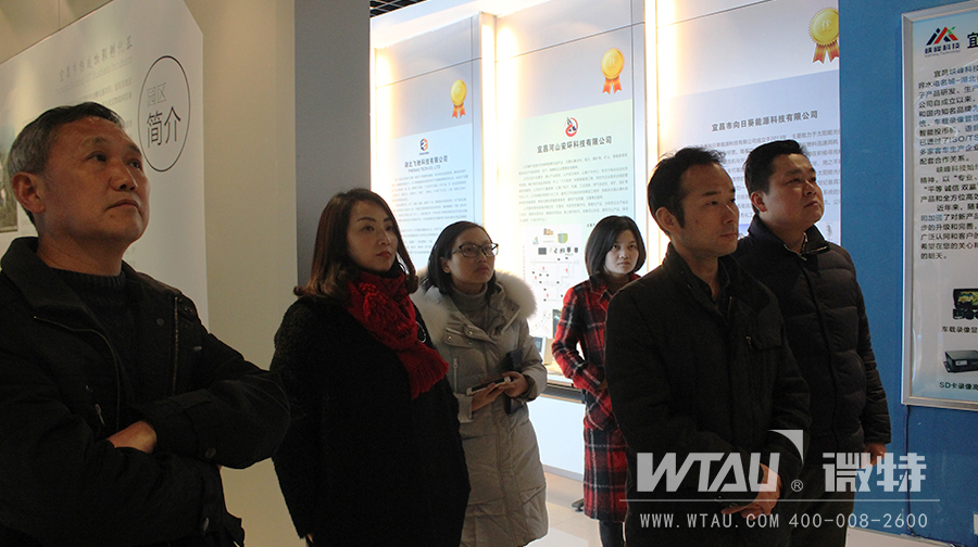 湖北省總工會(huì)領(lǐng)導(dǎo)一行在孵化器展示廳了解園區(qū)創(chuàng)業(yè)企業(yè)