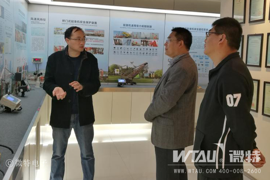 在三樓微特電子專業(yè)展示廳微特電子技術(shù)總監(jiān)高鈺敏向大家現(xiàn)場展示了起重機安全監(jiān)控系統(tǒng)遠程監(jiān)控管理平臺,真實查看了在線監(jiān)控起重機的實時狀況,并對微特安全監(jiān)控系統(tǒng)遠程平臺進行了現(xiàn)場操作和講解。來訪貴賓切身感受到微特電子的專業(yè)技術(shù)與實力走在國內(nèi)前列。