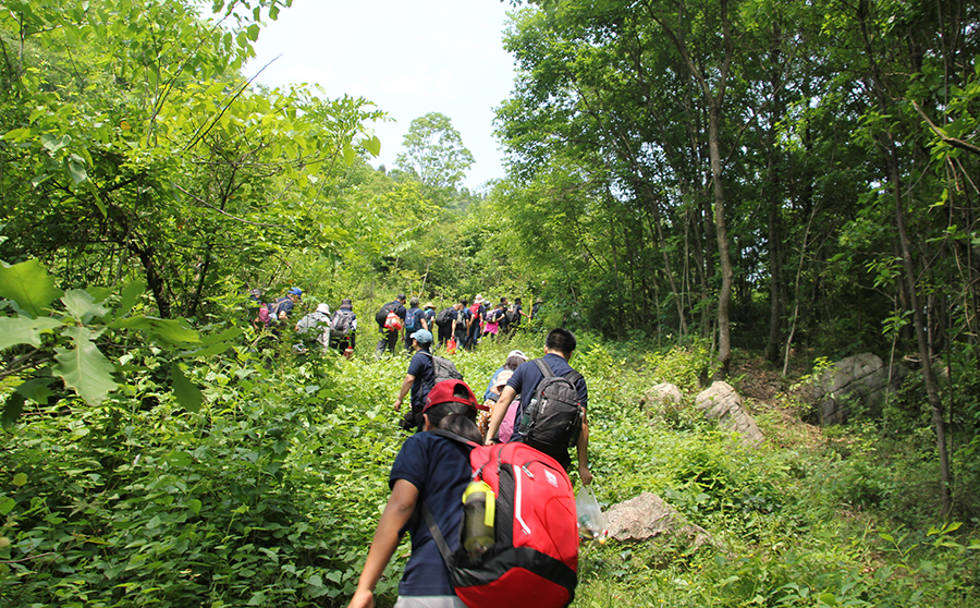 野炊結(jié)束各隊(duì)稍作休整即開始出發(fā),走在山澗的小路上,歡樂的隊(duì)伍打破了安靜的山林。
