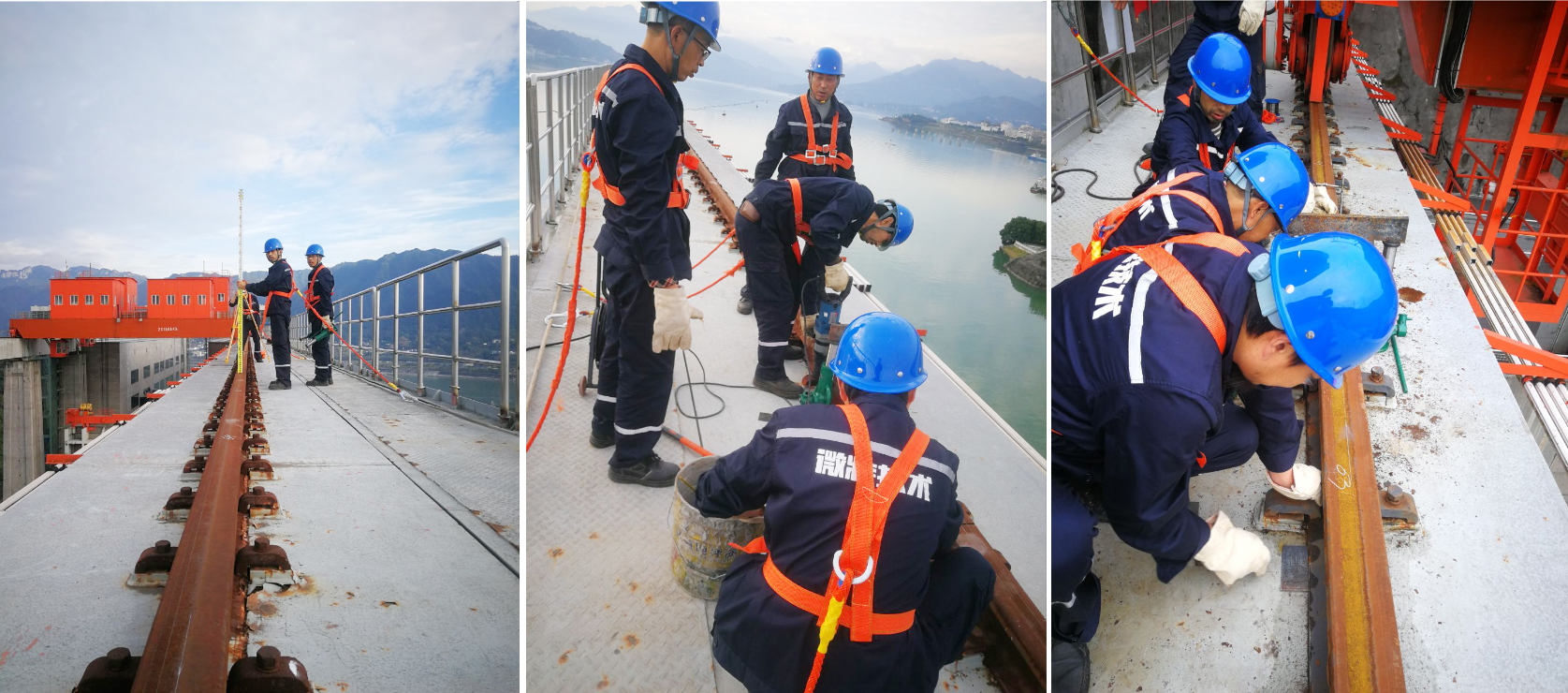 ▲微特技術人員配合三峽通航管局領導檢查現(xiàn)場施工情況