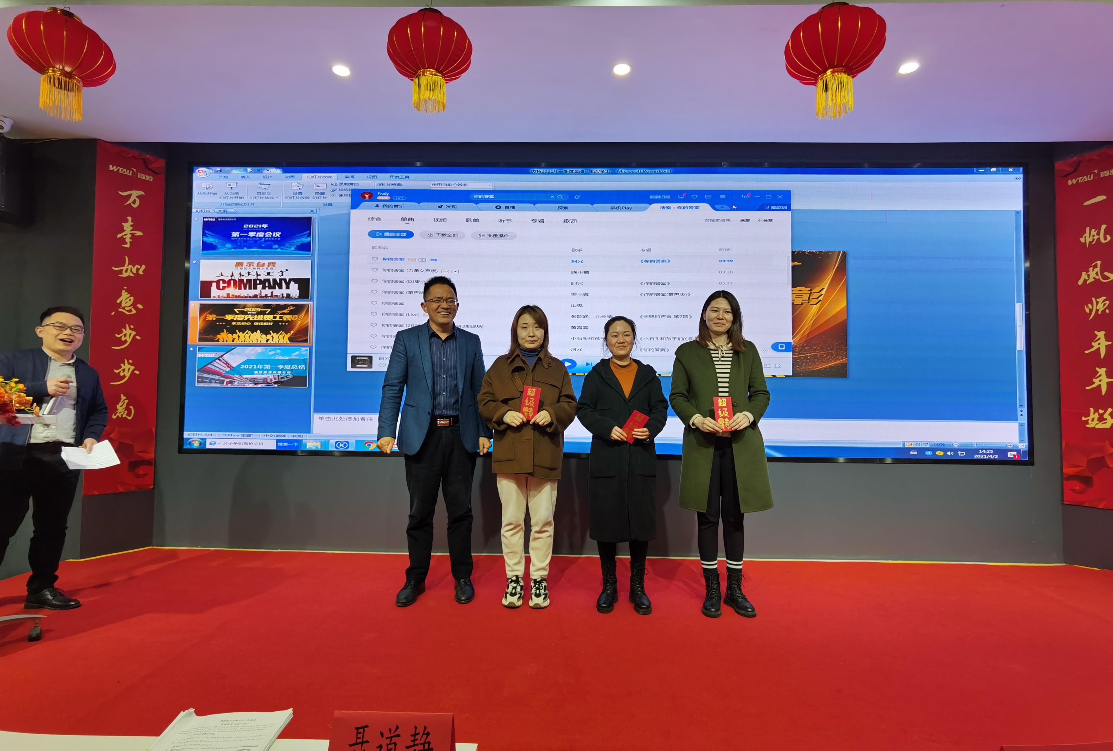 第一季度共有26位新員工加入微特大家庭,會議上邀請了在第一季度中加入微特的新同事進行了自我介紹,出差在外不在會議現(xiàn)場的新同事也通過視頻讓大家認(rèn)識自己。