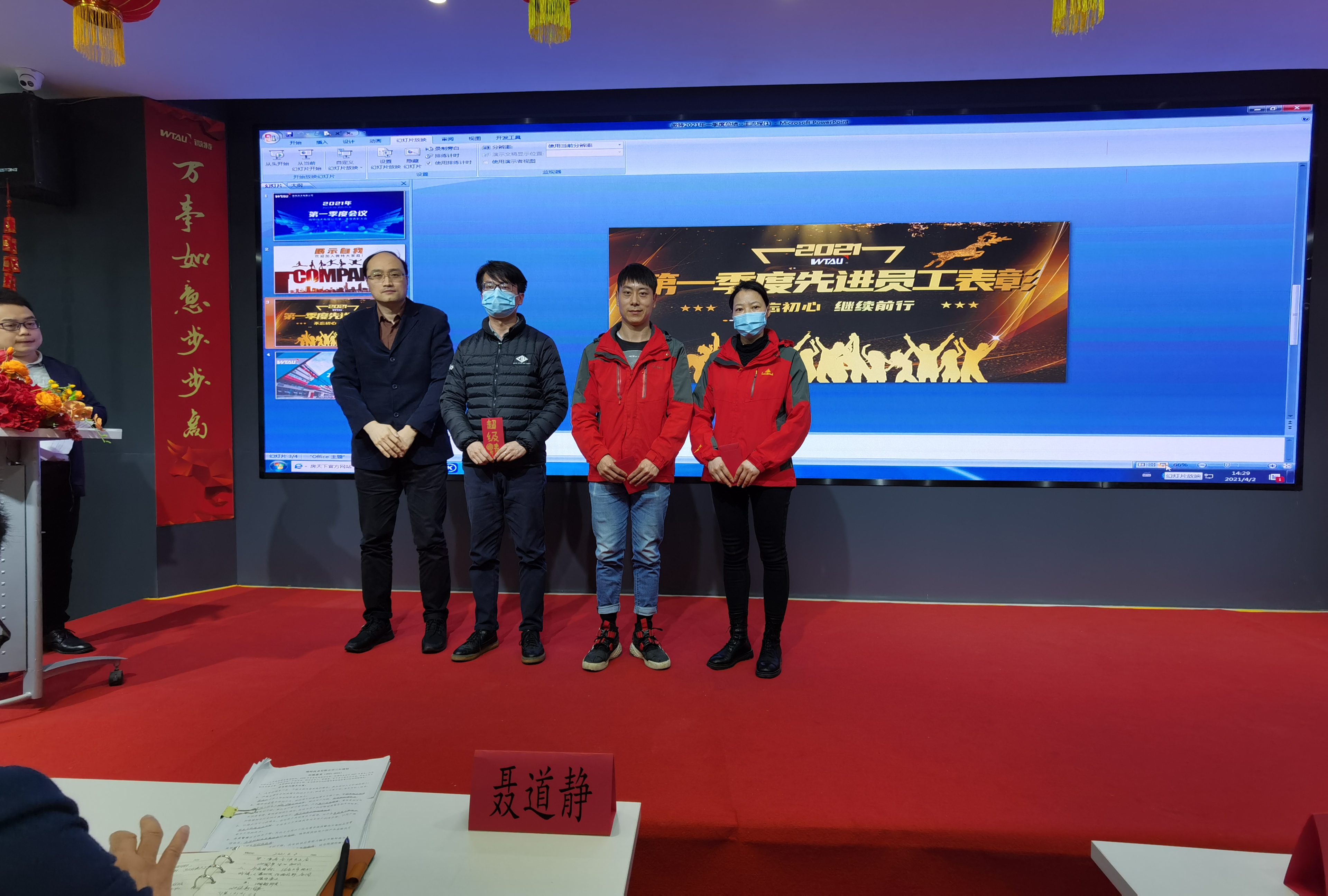 會議開始,輪值CEO李彬?qū)Φ谝患径冗M行了總結(jié)回顧,季度伊始聶董發(fā)表了“感恩有你攜手同行,牢記使命整裝再發(fā)”的2021年新年致辭,隨后在所有同仁的見證下湖北傳感物聯(lián)產(chǎn)業(yè)技術(shù)研究院揭牌儀式成功舉辦,同時微特度過了19歲生日。聶董作為人大代表參加了湖北省第十三屆人民代表大會第五次會議的系列會議,輪值CEO李彬被授予“宜昌市優(yōu)秀青年科技工作者”稱號,微特智慧谷總經(jīng)理郭麗麗榮獲宜昌市“杰出創(chuàng)業(yè)女性”榮譽稱號。這一季度微特參與三項世界第一的常泰長江大橋建設(shè),新防過卷開關(guān)(WGJ-1型)通過IP66防護等級認(rèn)證,海工、船舶、水電、訂單保障中心、研發(fā)中心、經(jīng)營管理部、孵化器等各部門都取得了優(yōu)異的工作成果。