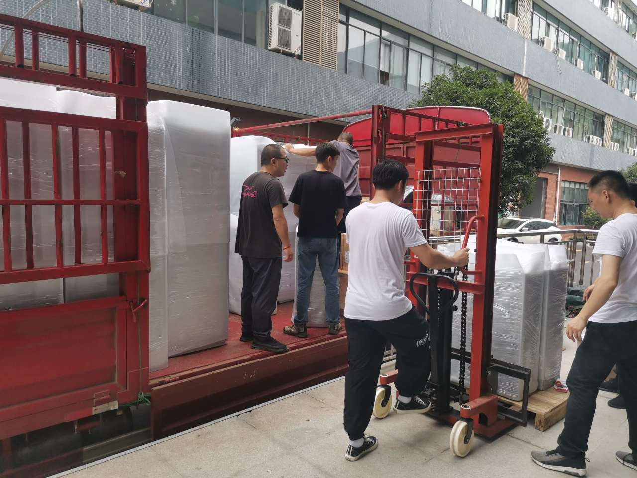 整裝待發(fā)的20余套電氣盤柜完成出廠前各項準(zhǔn)備工作開始裝車