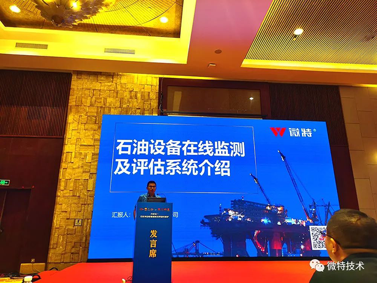 (微特海工事業(yè)部施總在會(huì)議上做題為“石油設(shè)備在線監(jiān)測(cè)及評(píng)估系統(tǒng)介紹”的演講)