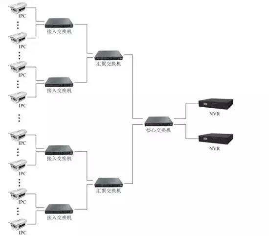 針對(duì)于50個(gè)點(diǎn)以上的中大型工程,需要采用三層網(wǎng)絡(luò)架構(gòu):接入層、匯聚層、核心層。同時(shí)由于點(diǎn)位較多,對(duì)核心層交換機(jī)的性能要求較高,一般這種情況下需選擇華為或華三等知名廠家的三層全千兆核心交換機(jī)(大家熟悉的普聯(lián)系列不推薦)。