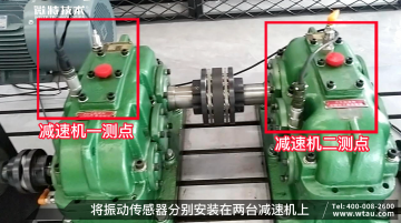 將實(shí)驗(yàn)臺(tái)旋轉(zhuǎn)設(shè)備開(kāi)機(jī)運(yùn)行,將振動(dòng)傳感器分別安裝在兩臺(tái)減速機(jī)上