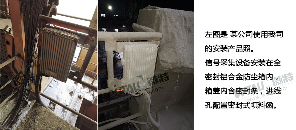 信號采集設(shè)備安裝在密封防塵防護(hù)箱中。防塵箱設(shè)計有防塵密封條,進(jìn)線孔配置密封環(huán)、填料函,對現(xiàn)場的金屬粉塵、金屬氧化膜、煙塵隔離,保障信號采集設(shè)備不受環(huán)境影響。