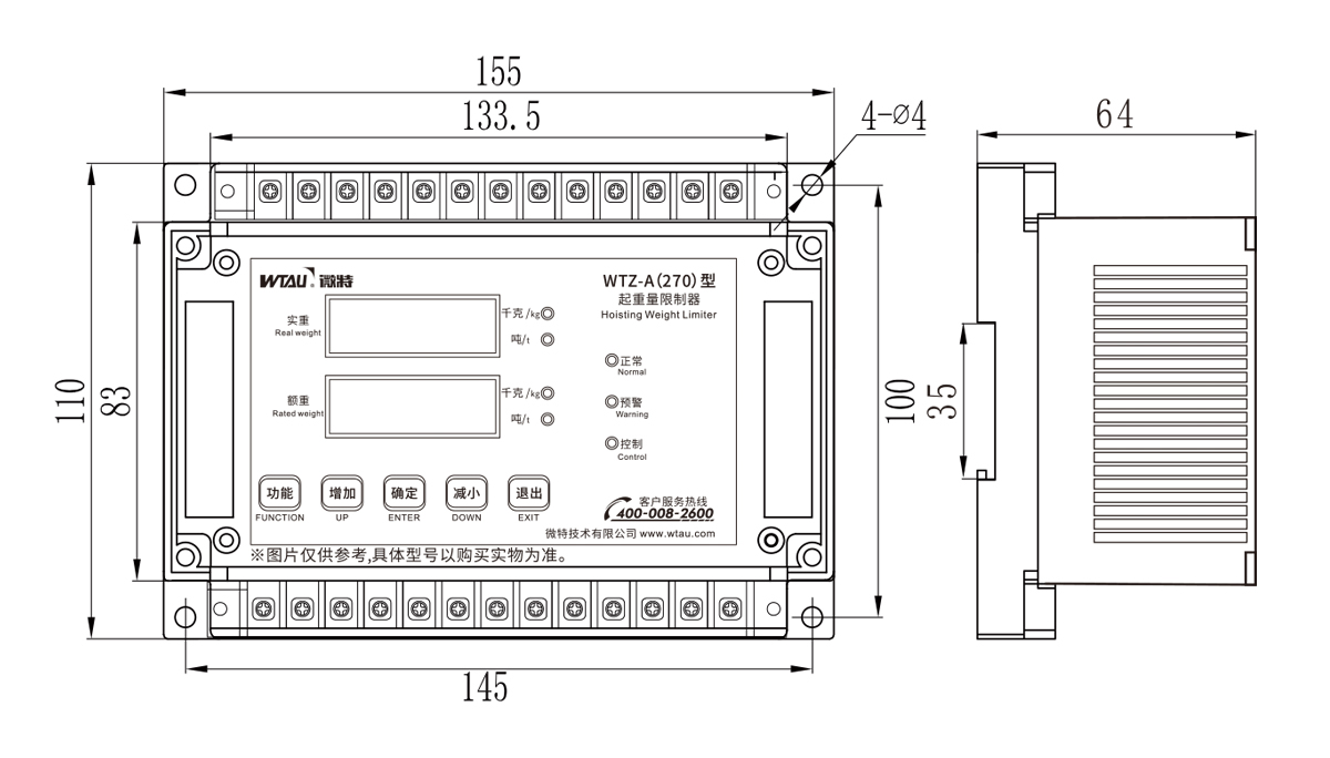 WTZ-A270型起重量限制器具有結(jié)構(gòu)合理、安裝方便、調(diào)試操作簡單、工作可靠、精度高等一系列優(yōu)點(diǎn)。