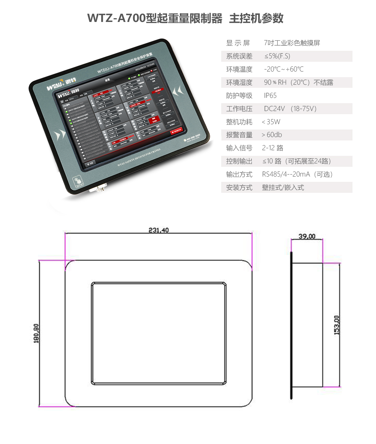 WTZ-A700起重量限制器裝備黑匣子功能,可升級(jí)為工作量統(tǒng)計(jì)功能,同時(shí)可監(jiān)測(cè)4~12路載荷信號(hào)。