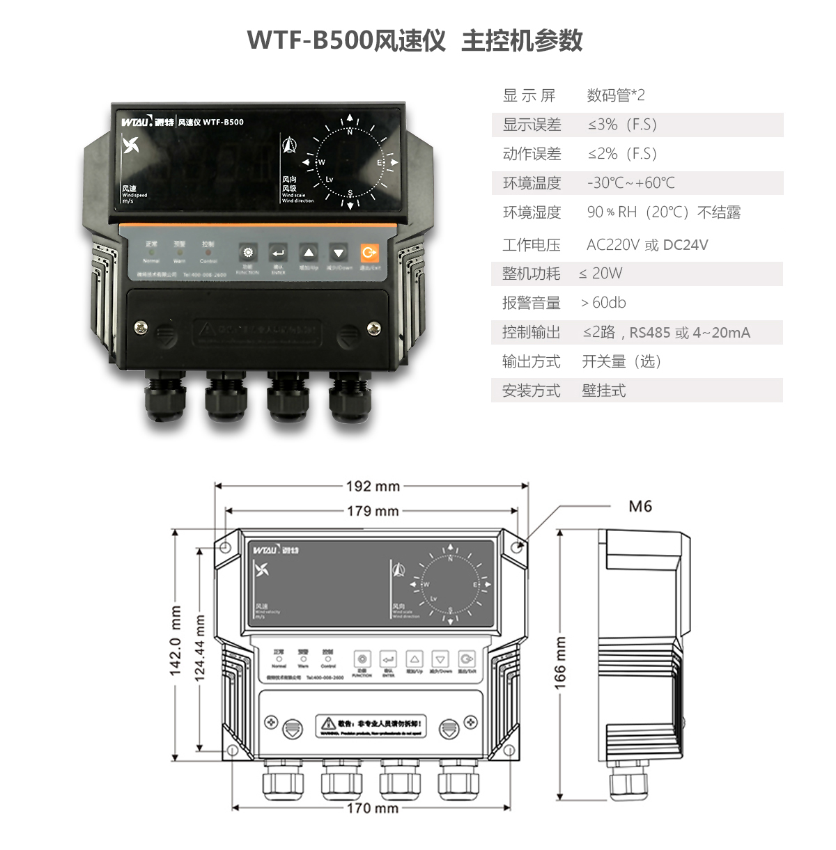 WTF-B500數(shù)字風(fēng)速儀穩(wěn)定性高、抗干擾能力強(qiáng),檢測(cè)精度高,風(fēng)杯采用特殊材料制成,機(jī)械強(qiáng)度高、抗風(fēng)能力強(qiáng),顯示器機(jī)箱設(shè)計(jì)新穎獨(dú)特,堅(jiān)固耐用,安裝時(shí)免調(diào)試,適用于不同的工作環(huán)境。儀表可擴(kuò)展數(shù)據(jù)存儲(chǔ)功能,可預(yù)留RS485及4-20mA接口。