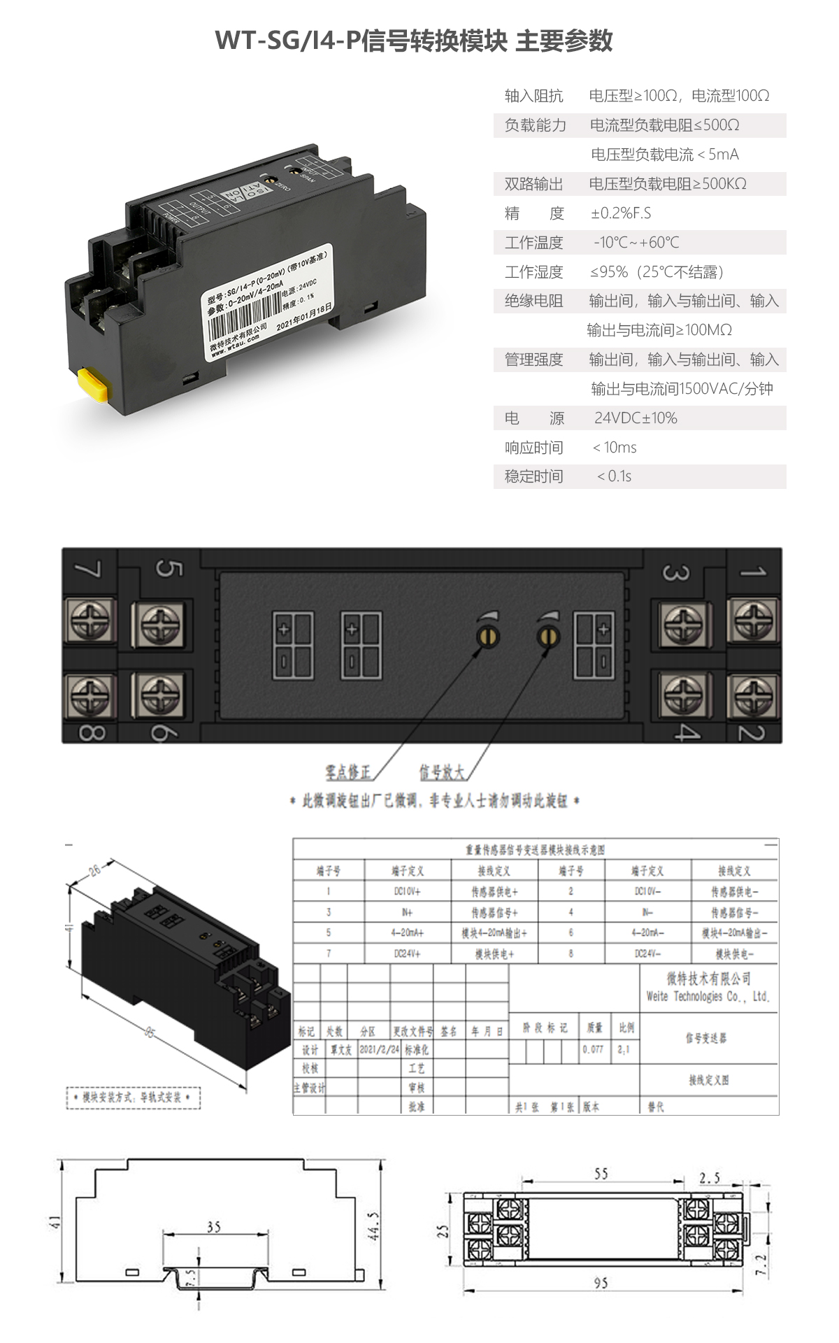 WT-SG/I4-P信號轉(zhuǎn)換模塊常用于各類傳感器的信號轉(zhuǎn)換。