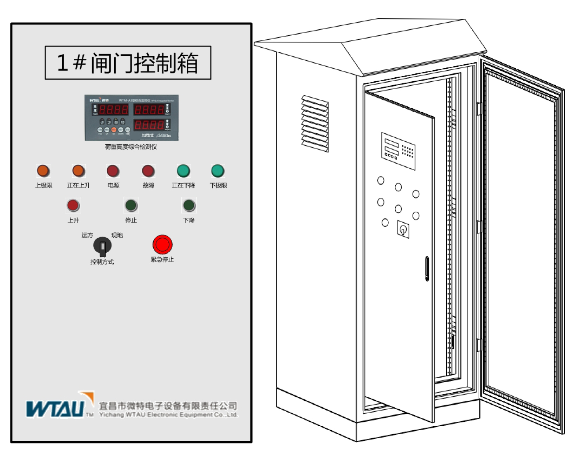 下圖為我公司設(shè)計(jì)的針對(duì)室內(nèi)型啟閉機(jī)的控制柜,柜體大小根據(jù)啟閉機(jī)電機(jī)容量決定。如是室外型啟閉機(jī),控制箱則換成不銹鋼材質(zhì)室外型。如下圖: