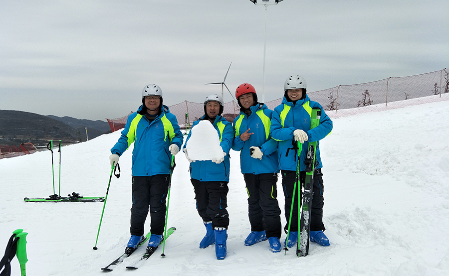 稍作休息,大家依次領入場卡券,穿戴整裝,拿上雪板進入期待已久的滑雪場。其中多數(shù)人都是第一次滑雪,戰(zhàn)戰(zhàn)兢兢踩上雪板,嘗試初滑。有經(jīng)驗的同事也不吝分享滑雪技巧及如何避免摔傷,正如大家平時常分享工作中遇到問題的“不二過經(jīng)驗”一樣,互幫互助,團結一致。在這個過程中,彼此互相鼓勵,即使歷經(jīng)無數(shù)次摔倒、爬起,依然樂此不疲。