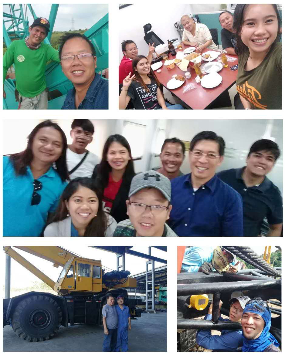 第一次來菲,恰逢這里的雨季,這里的雨水就像熱戀里情人間的思戀——驟然而來,綿綿不絕。因此,留給我們施工的時(shí)間顯得彌足珍貴。我們顧不上腳下的淤泥,擼起袖子加油干。所安裝的第一臺(tái)起重機(jī)力矩限制器就順利通過了當(dāng)?shù)仳?yàn)車官的檢驗(yàn),贏得了客戶的信任。
