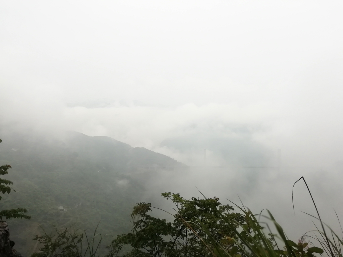 路邊便是陡峭的崖壁,可以隱約地看到遠(yuǎn)處有一座橋梁橫跨在兩山之間,云霧之中,破為壯觀。這里的空氣,讓人有一種久違的感覺(jué)。
